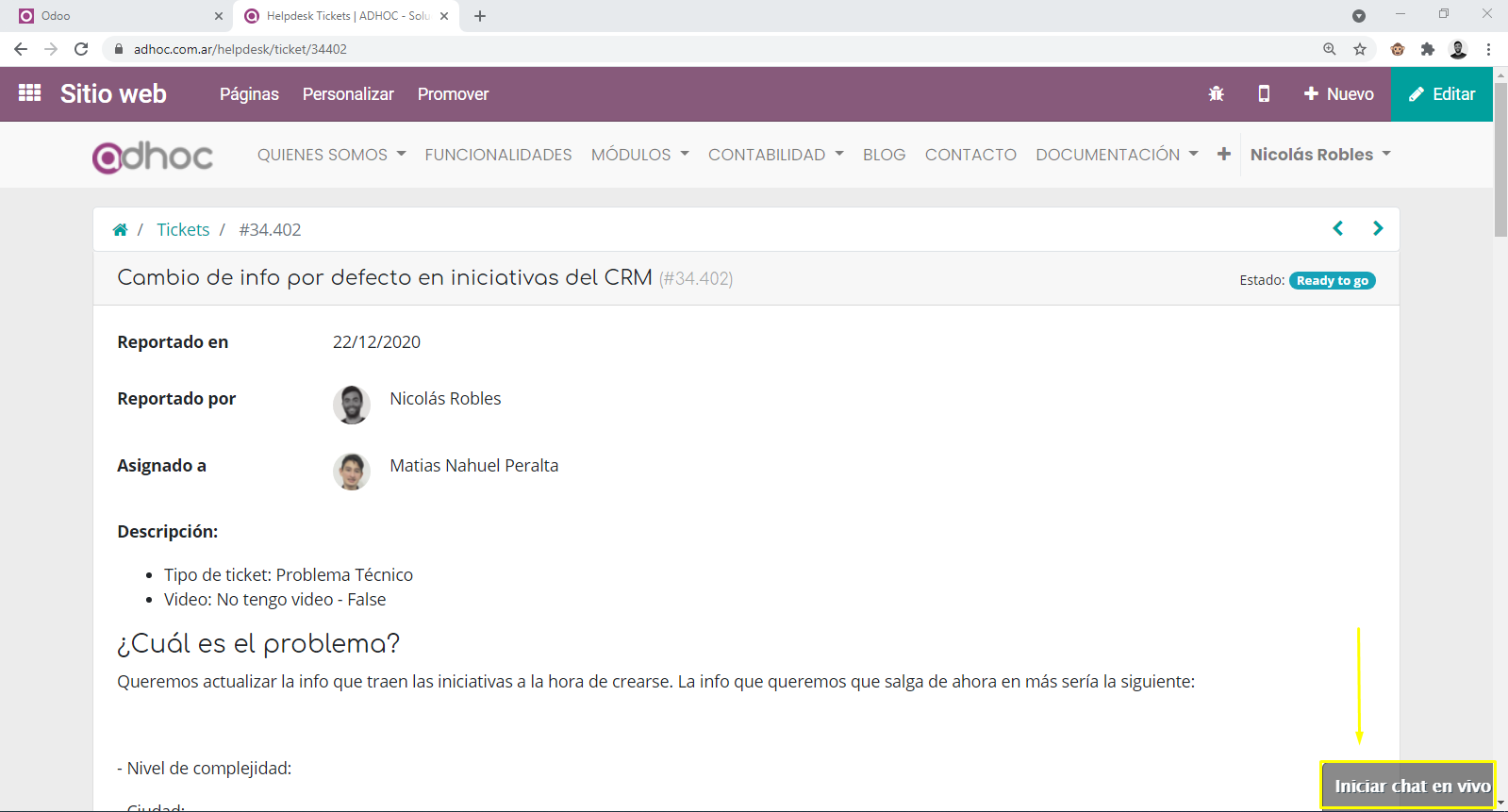 Si sos un usuario con acceso a carga de tickets en Odoo by Adhoc vas a poder seguir los siguiente pasos.